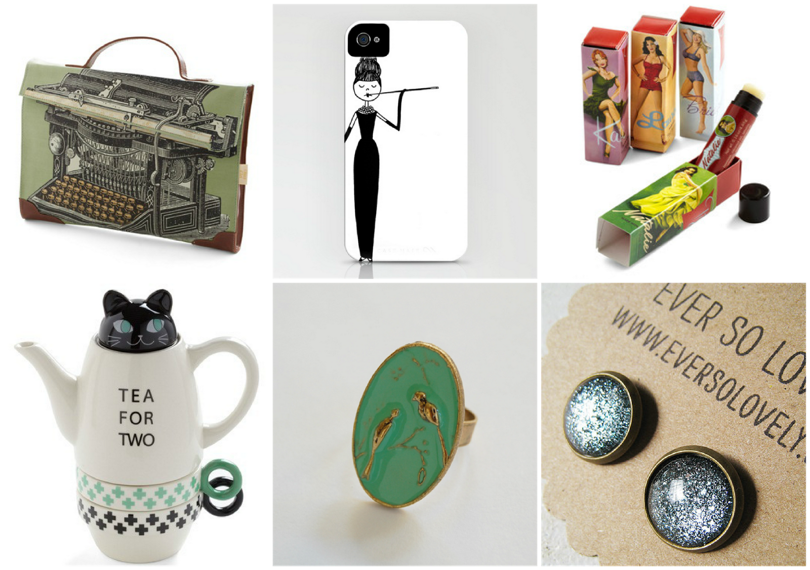 Here are my lovely likes of the week. The first is a laptop case, which is absolute perfection. Need I mention the irony with having a typewriter on a case that is meant to hold a laptop. But I love it, its got a handle and its from wonderful Mod-cloth. The second is an iPhone case by flapper doodle - check the website out, if I had the money I'd buy every single doodle in every form it comes in. Mod-cloth is also responsible for the pin up lip balms that come in a set. Flavors include, Peppermint Rosemary, Grapefruit Orange, Lavender Chamomile, and Nutmeg Orange. Pin up style is something I am crazy for so no surprise when it became a lovely like.
